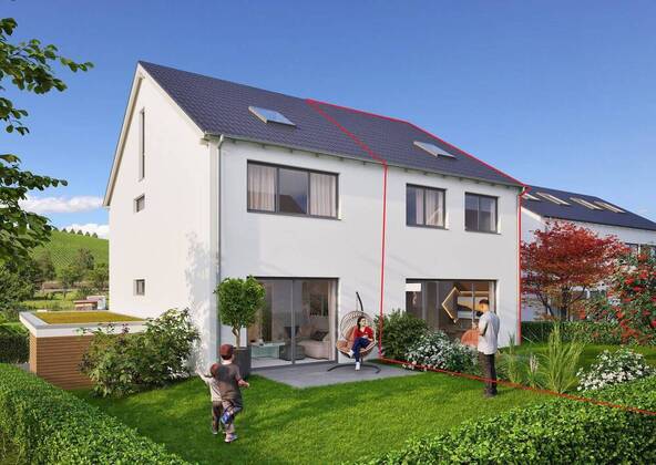 Mehr zum Angebot Doppelhaushälfte Bermatingen – massiv, genehmigt, individuell geplant – schlüsselfertig zum Festpreis | ca. 145 m² Wfl.: